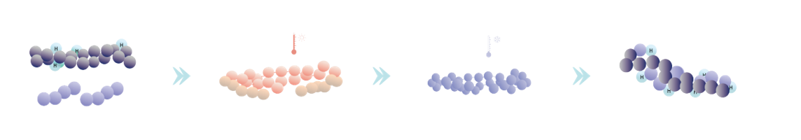 Para aplicações clínicas que visam o lifting de tecidos cutâneos e a restauração do volume, o gel de AH deve possuir uma combinação única de elasticidade e viscosidade para responder eficazmente a diversas tensões mecânicas nos tecidos. Como resultado, essa tecnologia otimiza a reologia do produto, principalmente ao obter uma estrutura uniforme de AH reticulado. Ela garante a viscosidade necessária para uma excelente injetabilidade, ao mesmo tempo em que aumenta a densidade dos nós químicos. Isso garante a coesão do gel de AH e mantém suas propriedades monofásicas.